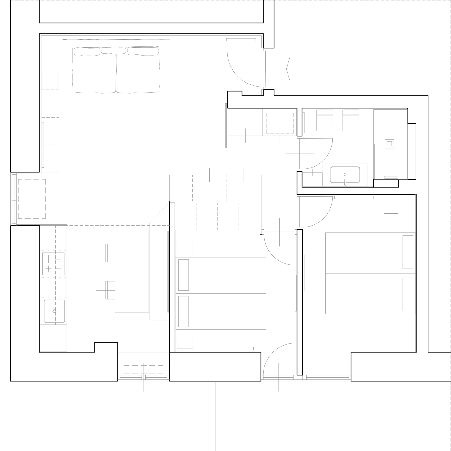 L’orizzontalità scelta nelle pose allarga visivamente gli ambienti di vita. Nei toni dei grigi le stoffe ed i tendaggi rifiniti con delicati disegni decorativi in tema alpino.